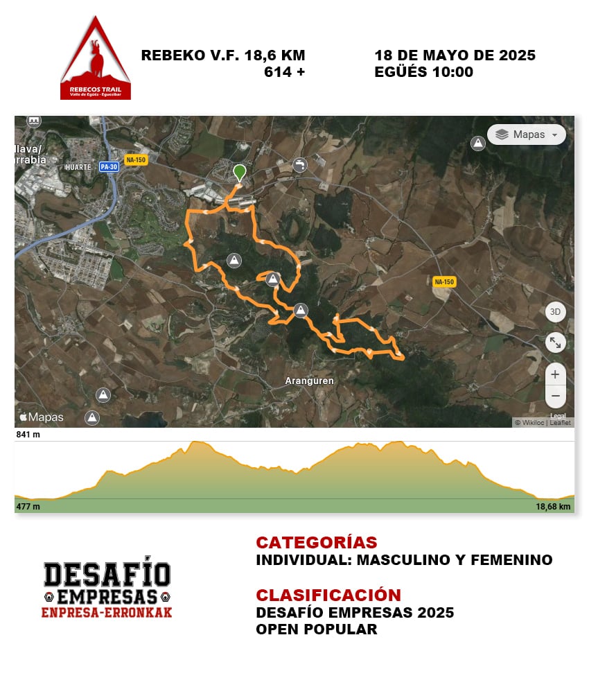 La Rebeko es la versión larga de la carrera para las personas más preparadas. Sigue siendo una prueba y distancia muy asequible con un desnivel moderado, con tan solo 682 metros positivos. Muy adecuada para iniciarse en una trail en distancias un poco más largas pero sin ser excesivas. Se trata de un recorrido circular con inicio y final en la localidad de Egüés (junto al Vivero de Empresas) y que discurrirá por la ladera del Malkaitz, que pasará por Ardanaz, la Regata de Kolostrin para subir al Tangorri y seguir dirección Yelz, después de transcurrir por sendas "ratoneras" subir nuevamente hacia el Tangorri volver al punto de partida en Egüés pasando antes por el Portillo de San Miguel y el Donatsai.